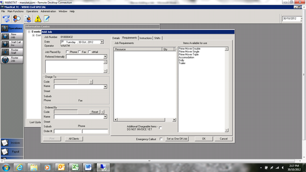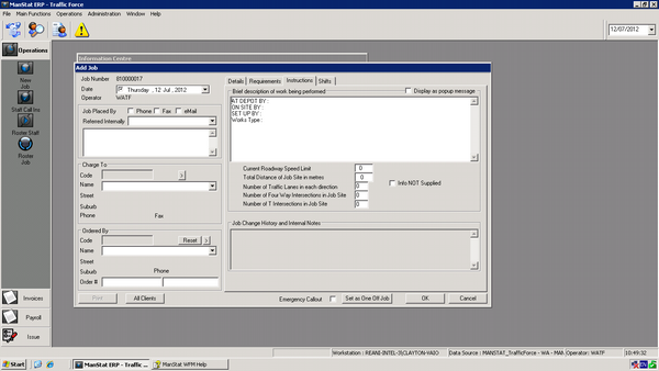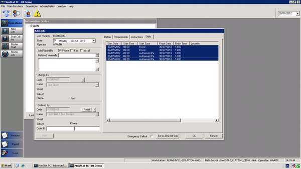 18. Once shifts are correct click ok and the job is booked. The job can be now viewed in job maintenance as a cross check.