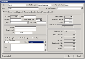 | 8. | Add a product Code, an Accounts Code and enter in the Description. |