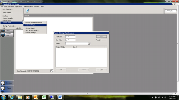 1. Go to File – System Setup – Public Holiday and the following screen will appear